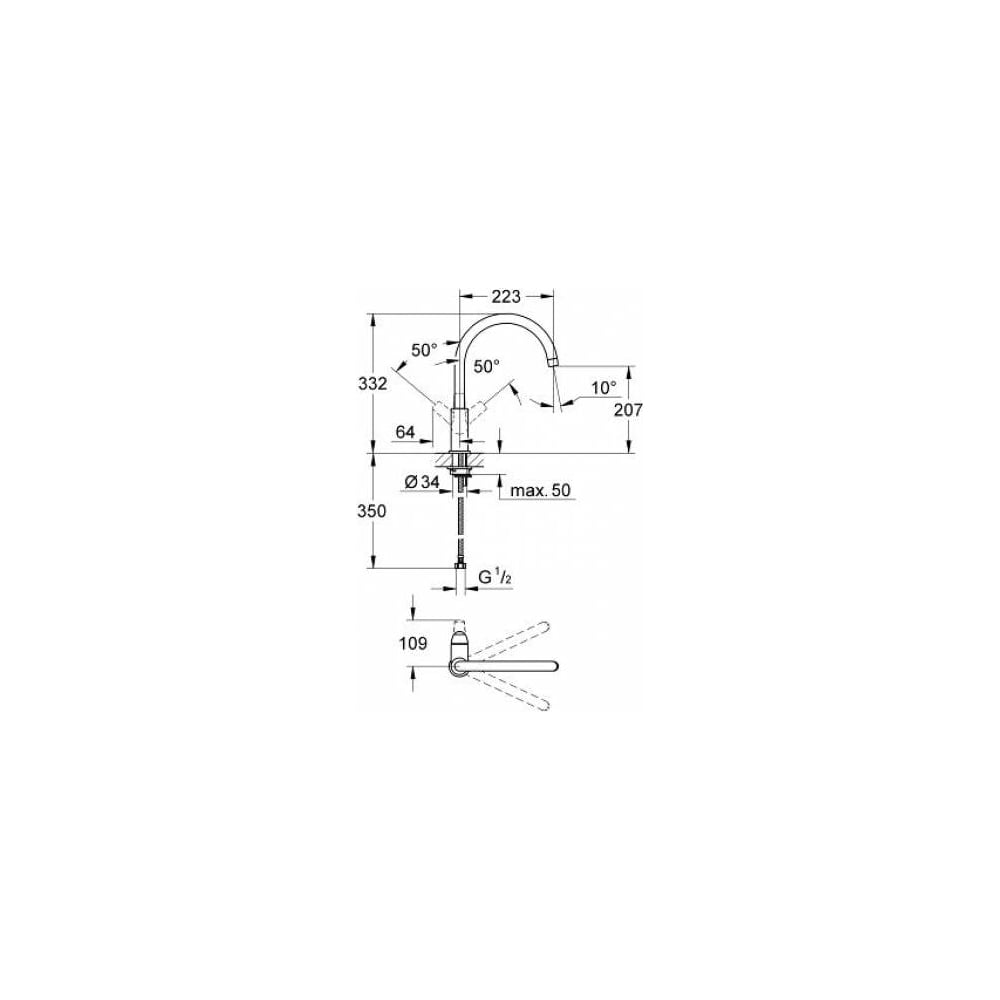 | Высота смесителя | 332 мм |