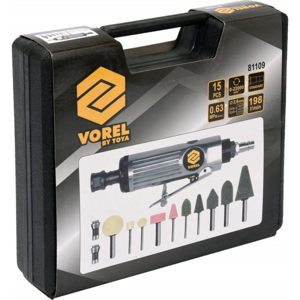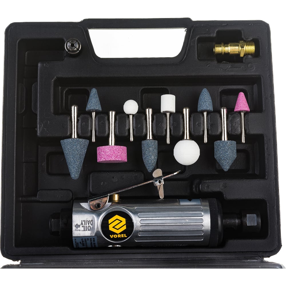 Прямая пневматическая шлифмашина VOREL с аксессуарами 81109
