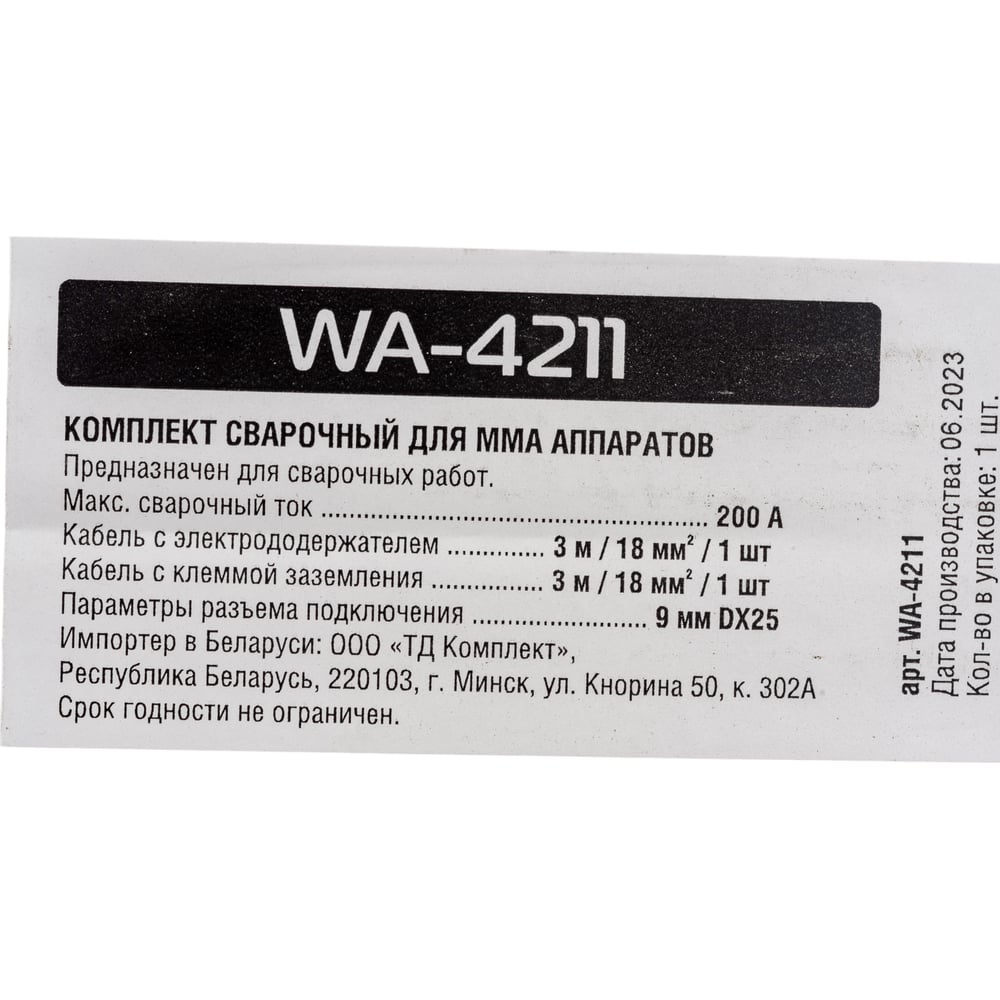 Комплект сварочный для MMA SOLARIS WA-4211
