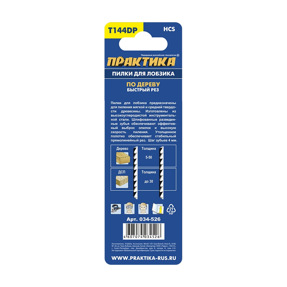 Пилка (2 шт; T144DP) для лобзиков ПРАКТИКА 034-526