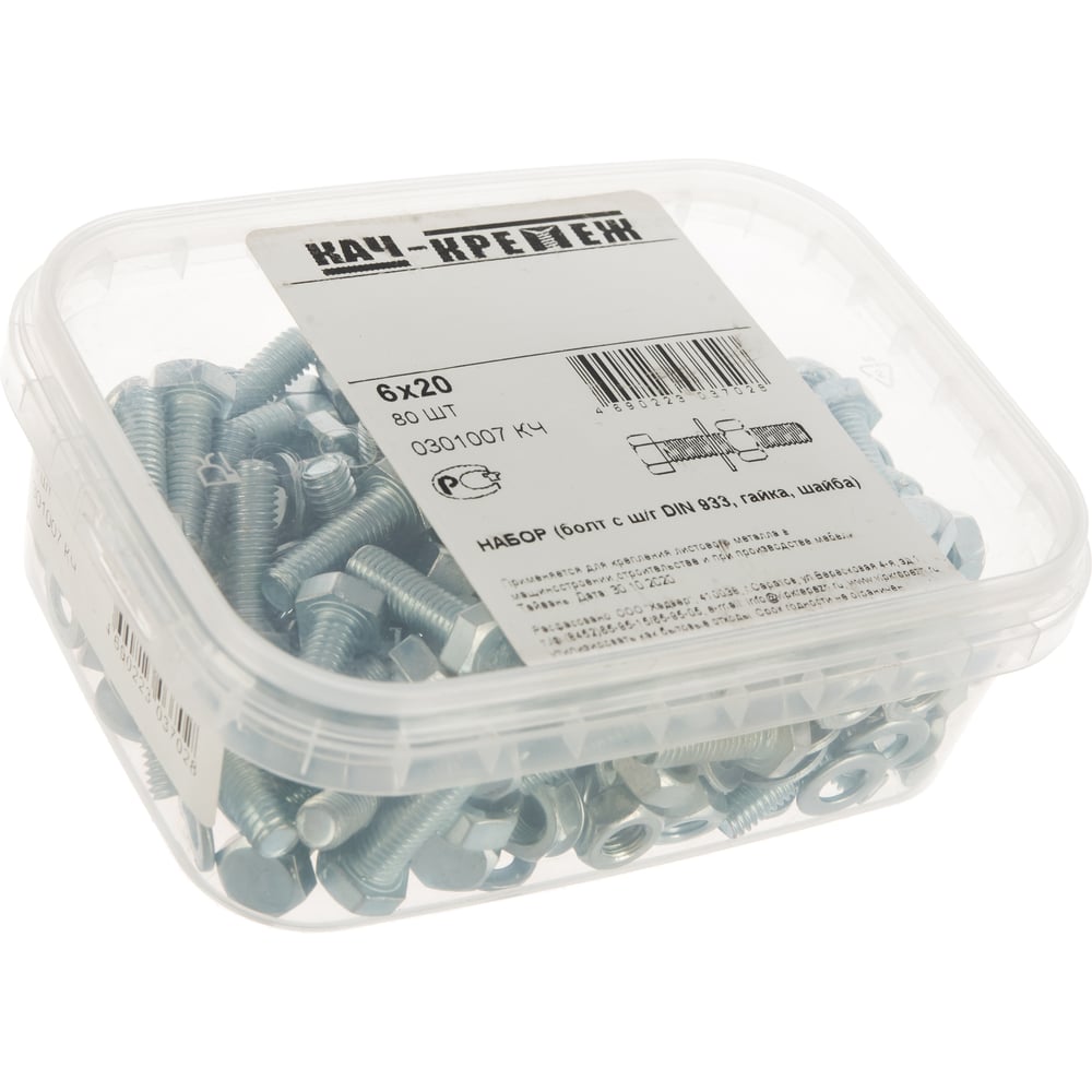 Болт с ш/г полная резьба DIN 933 Качественный КРЕПЕЖ набор 6х20 80 шт 0301007 КЧ