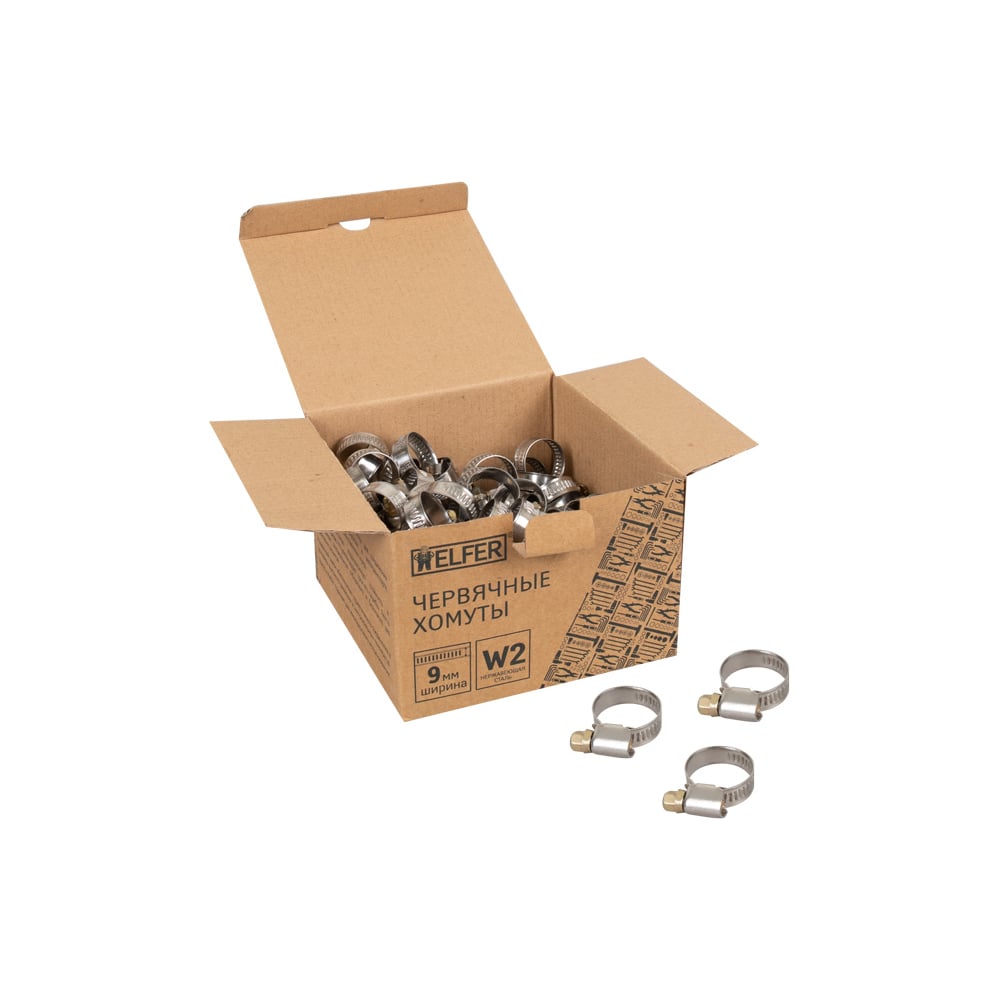 Хомут HELFER W2, 12-22 мм, нержавеющая сталь, уп. 100 шт. HF004051