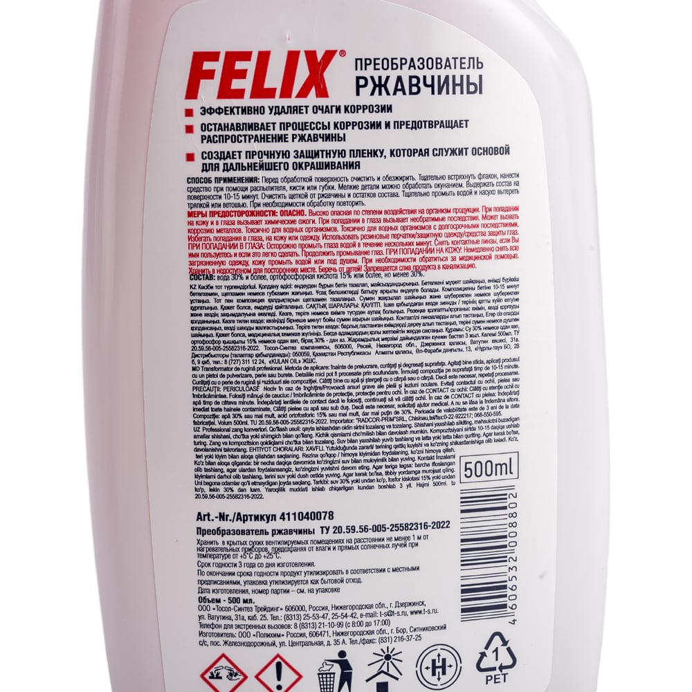Преобразователь ржавчины FELIX (500 мл; триггер) 411040078