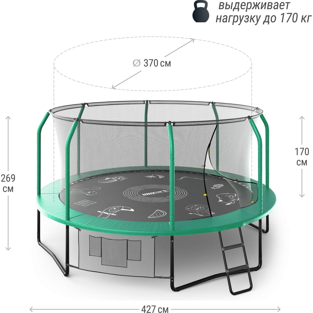 Батут UNIXline SUPREME GAME 14 ft green TRUSUG14GR