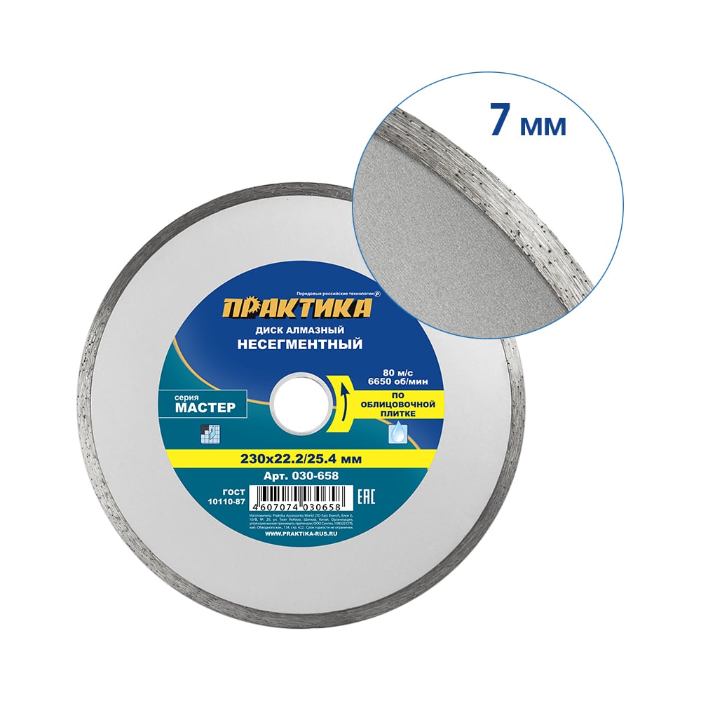 Диск алмазный Мастер (230х22.2/25.4 мм) ПРАКТИКА 030-658