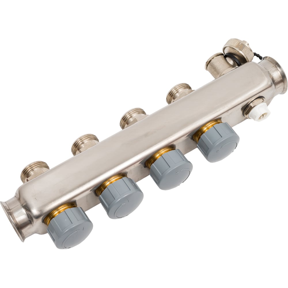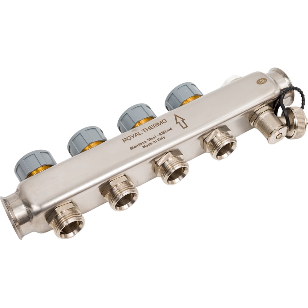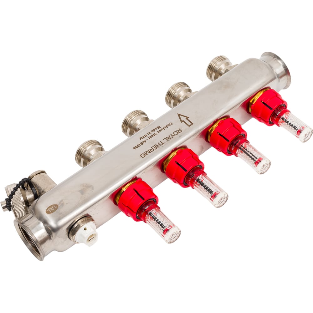 Коллектор в сборе Royal Thermo нержавеющая сталь, с расходомерами 1 ВР-3/4 НР, 4 выхода НС-1080950