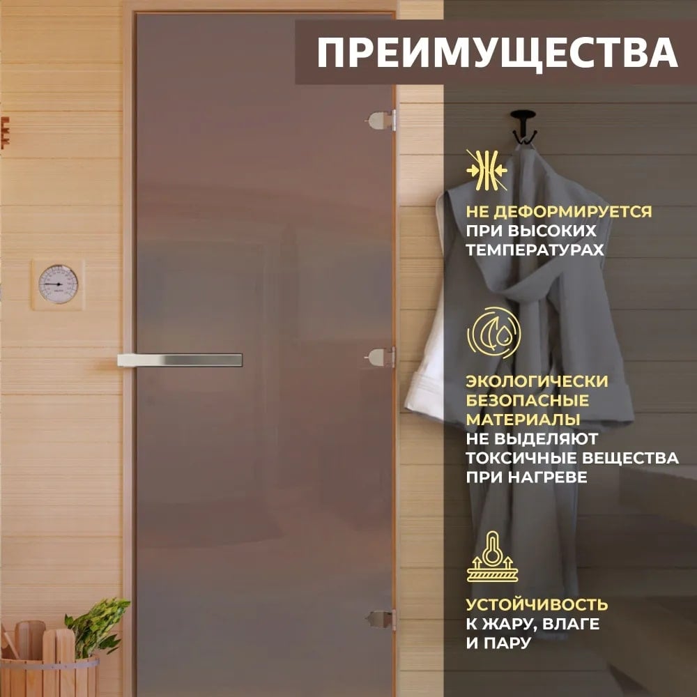 Дверь для бани DoorWood матовая бронза, 2000x800 мм, левая, петли слева DW-00014742