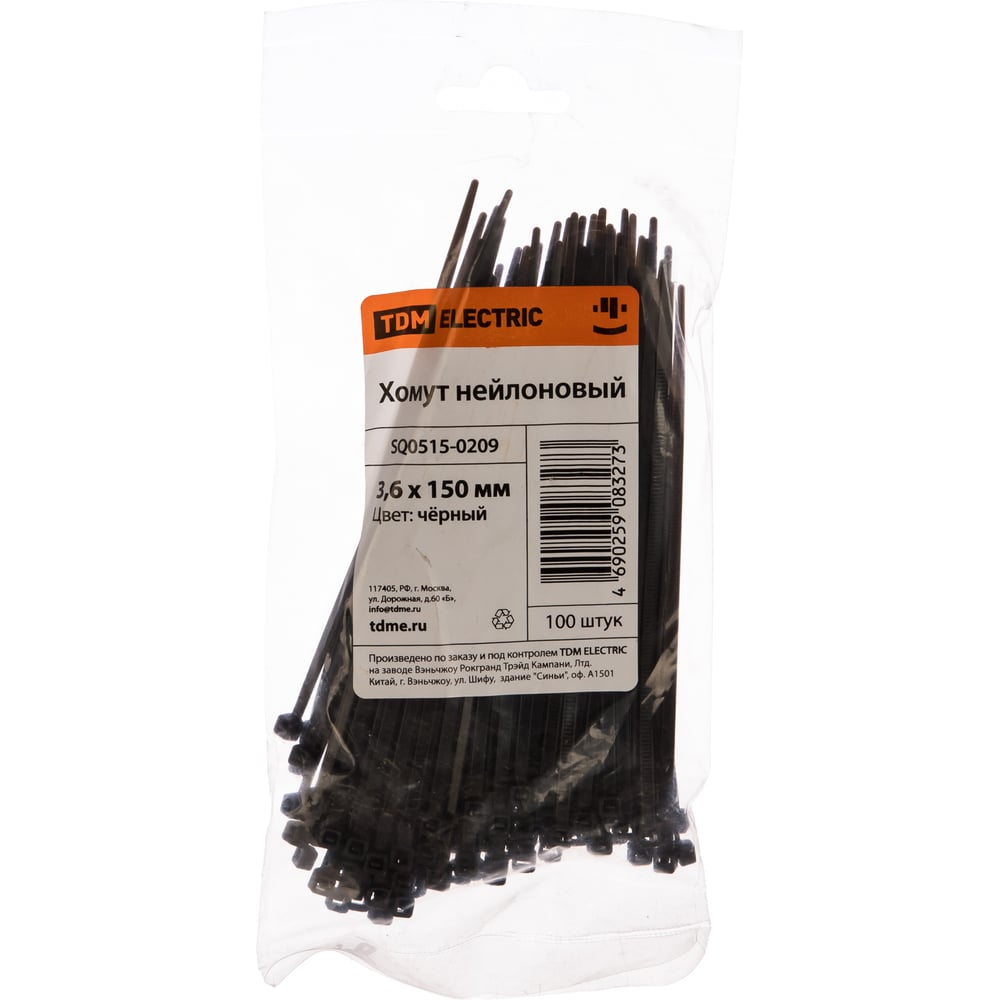 Хомут TDM ELECTRIC 3,6x150 мм, нейлон, черный, 100 шт. SQ0515-0209