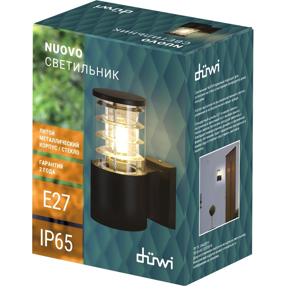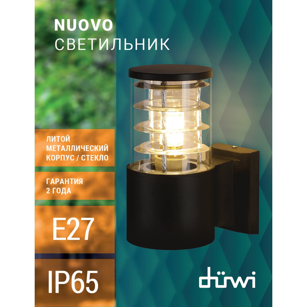 Настенный накладной светильник duwi Nuovo, 1хЕ27х60Вт, IP65, 175х108х220мм, алюминий/стекло, черный 24393 9
