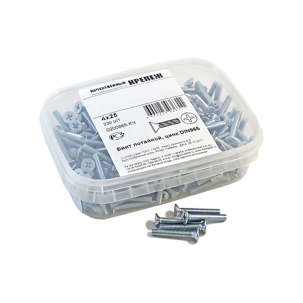 Винт качественный крепеж 4x25230 DIN965 (230 шт.) 0200865