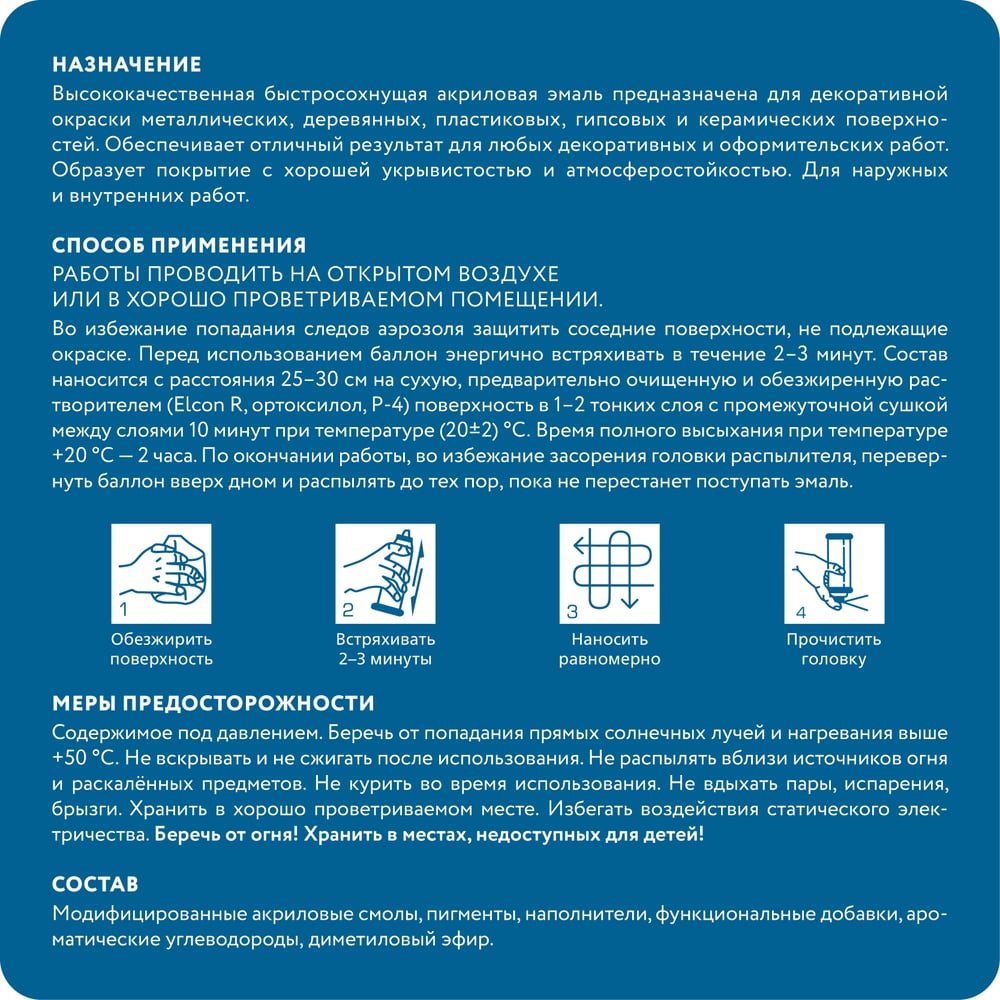 | Способ нанесения | аэрозольное распыление |