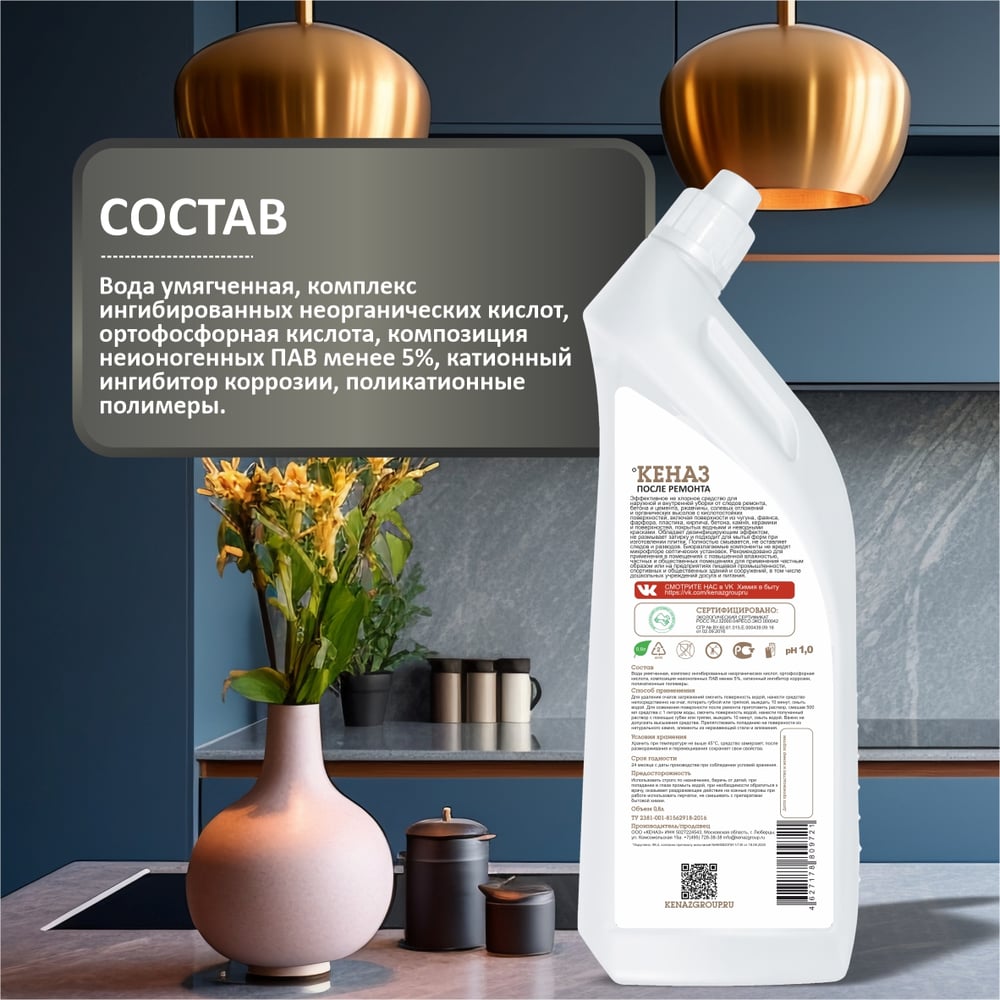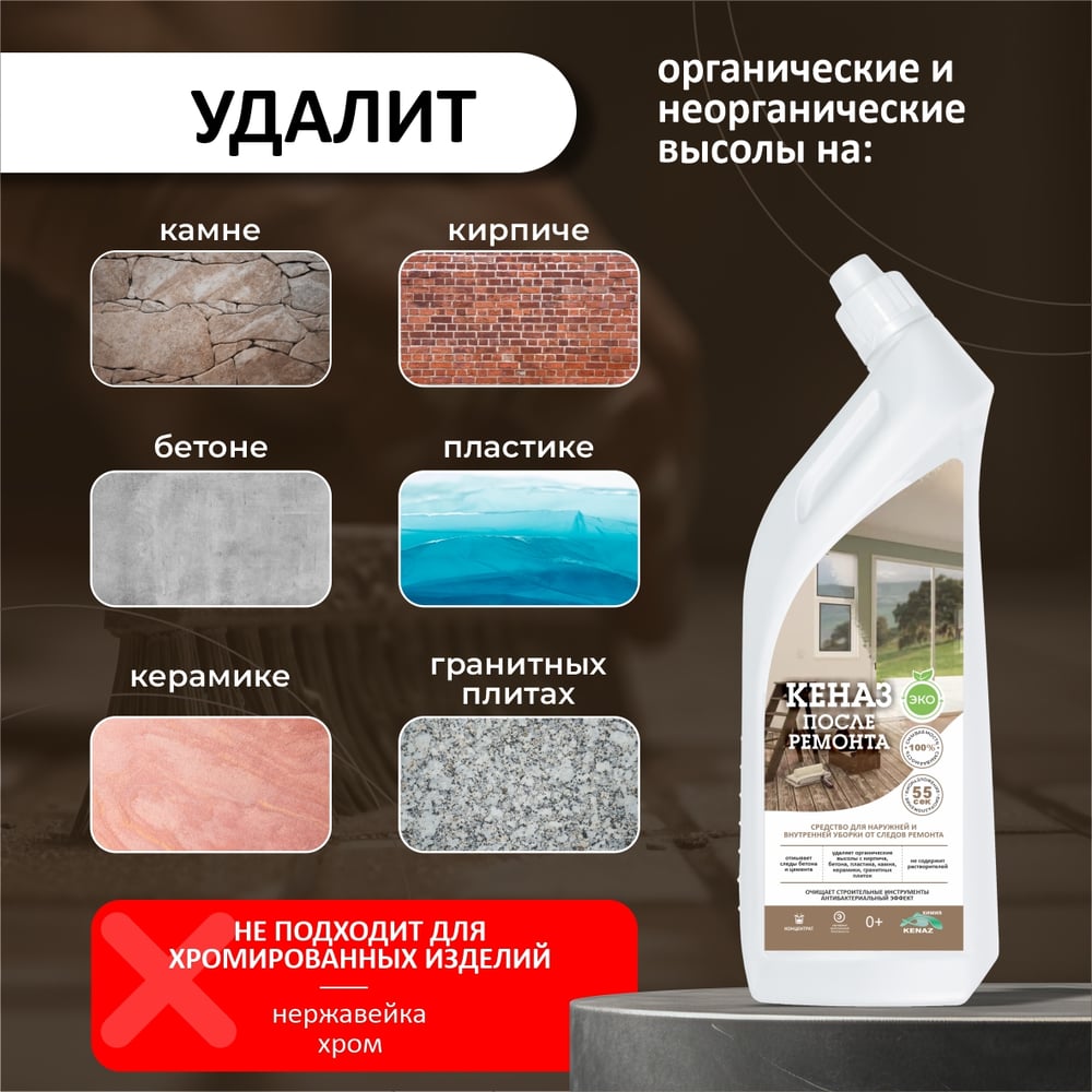 Средство для удаления известкового и цементного налета после ремонта KENAZ после ремонта 809721