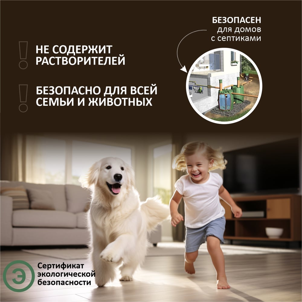30% очищенная вода, композиция неорганических кислот более 15%, в том числе соляная кислота, более 5% неиногенные ПАВ, ингибитор коррозии, ортофосфорная кислота, поликатионные полимеры более 1%.