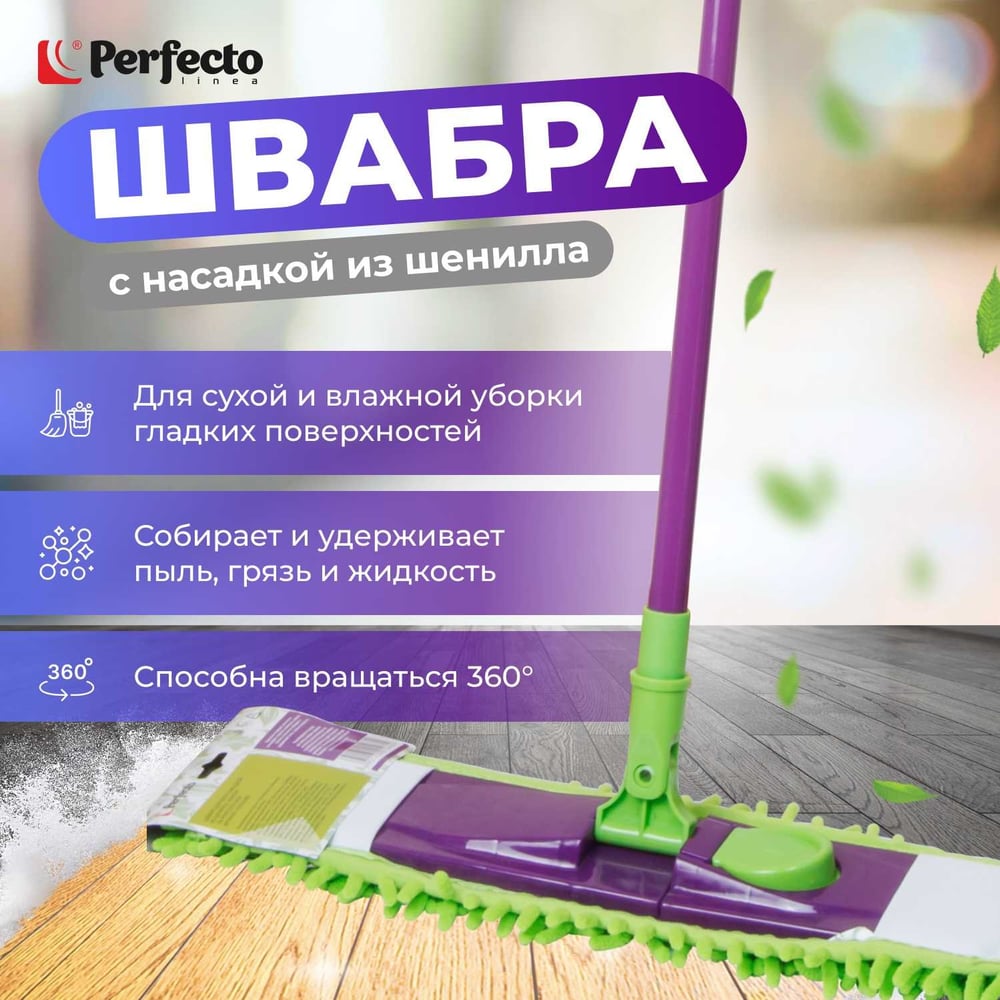 Швабра для пола PERFECTO LINEA Concept с насадкой из шенилла, салатовая 43-001060