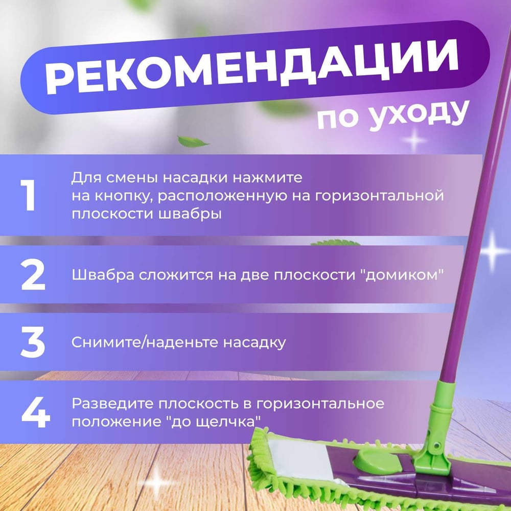 Цвет фиолетовый/зеленый Тип швабра Тип насадки плоская Материал насадки шенилл Материал рукояти пластик/сталь Телескопическая рукоятка да Длина ручки 1200 мм Наличие ручки есть С отжимом нет С распылителем нет Длина насадки 430 мм Тип крепления насадки карман Гибкое основание нет Ширина насадки 140 мм