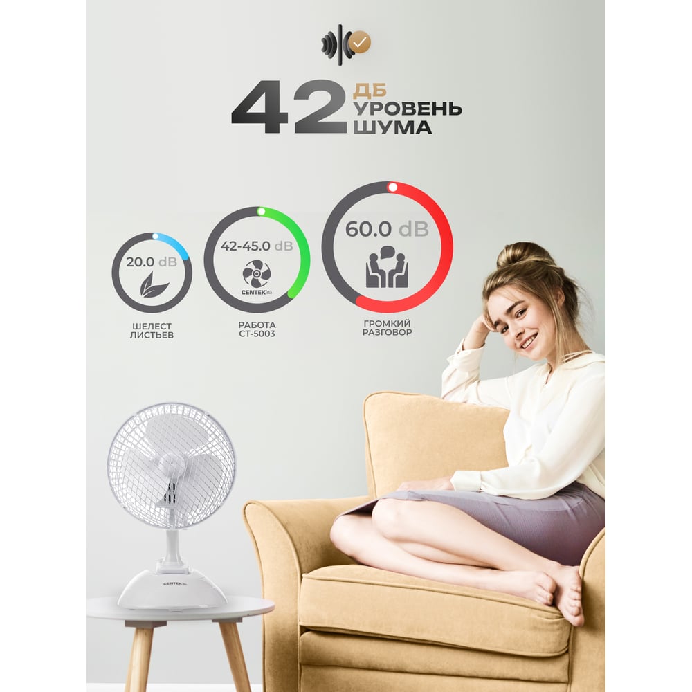 Настольный вентилятор Centek 20 Вт, диам: 19 см, клипса, металлическая решётка CT-5003 White