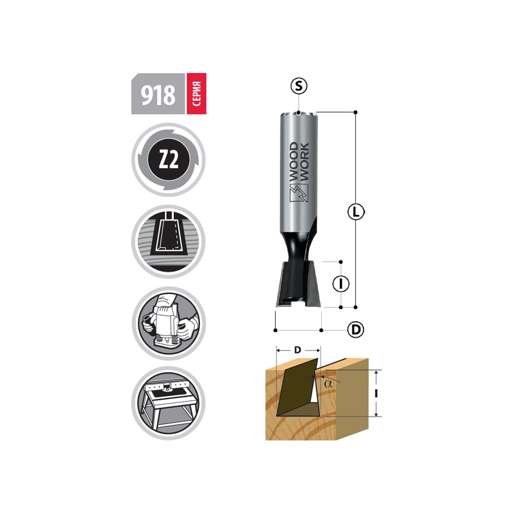 Фреза ласточкин хвост 9.5 мм, S=6 мм, угол=9° WOODWORK 918.9509.06
