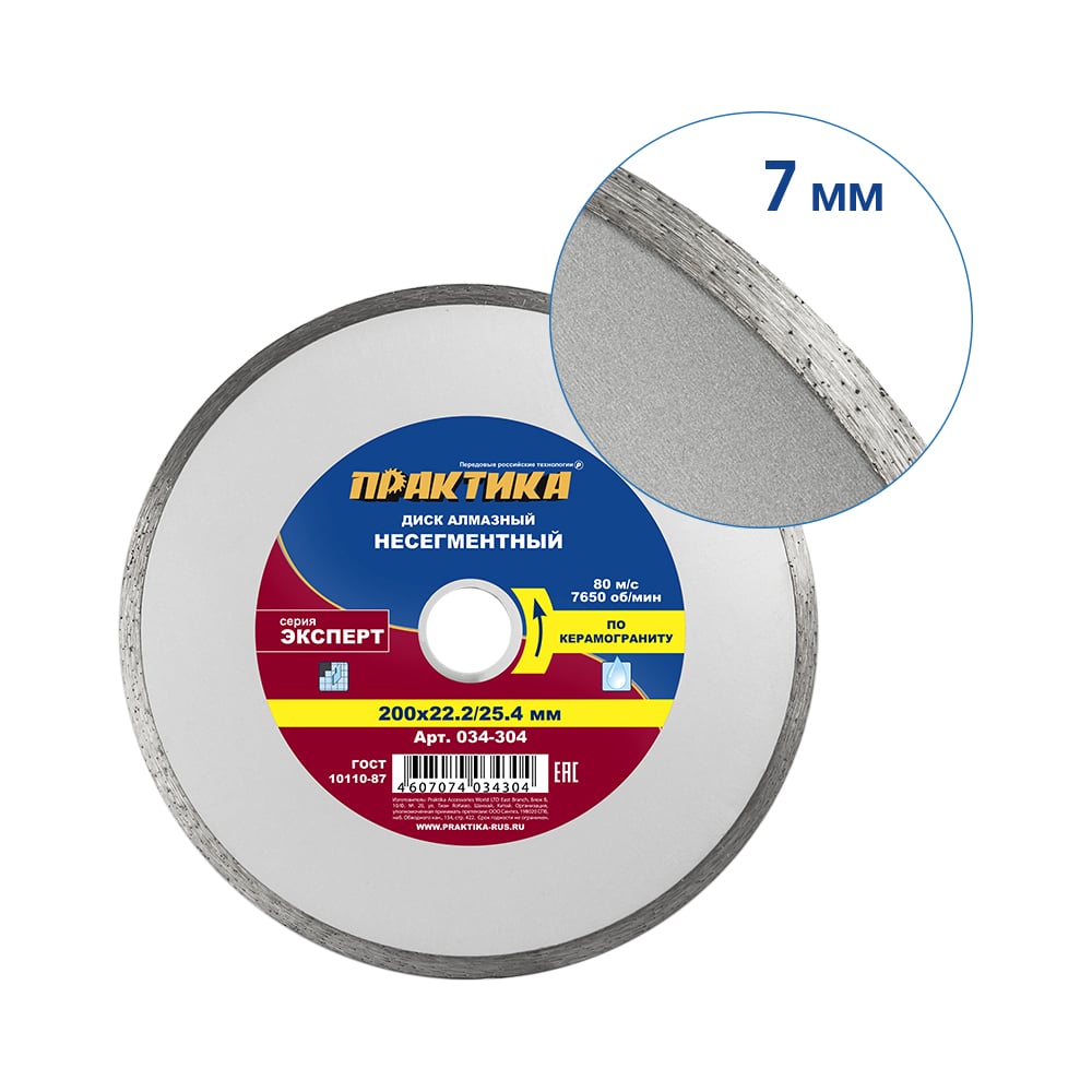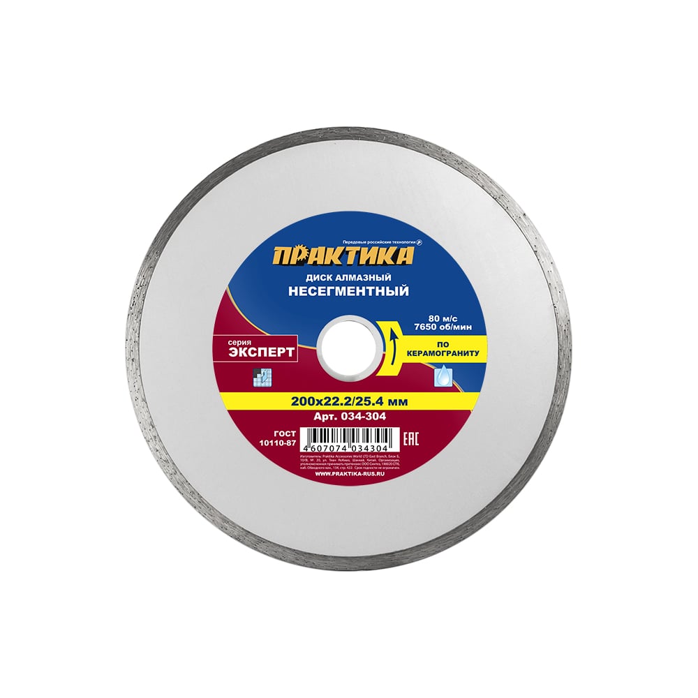 Диск алмазный по керамограниту Эксперт (200х25.4/22.2 мм) ПРАКТИКА 034-304