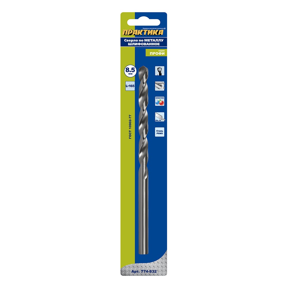 Сверло по металлу удлиненное (8.5х165 мм) ПРАКТИКА 774-832