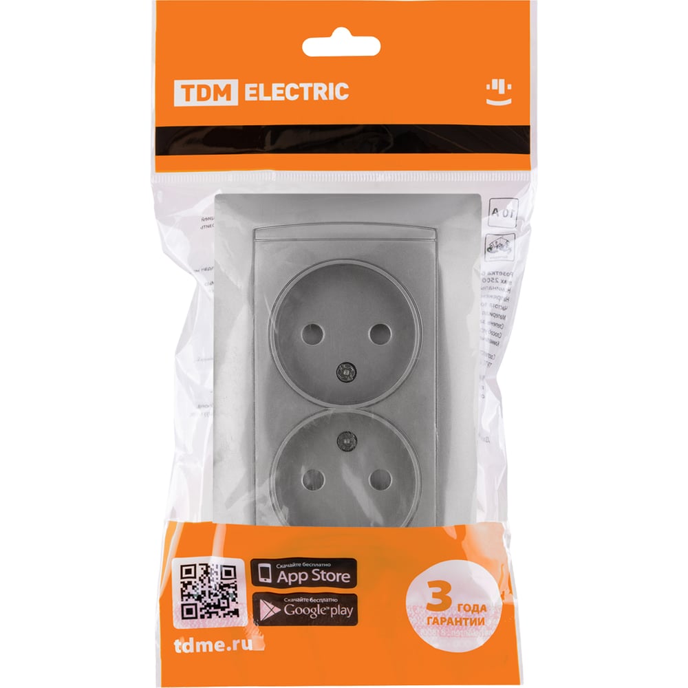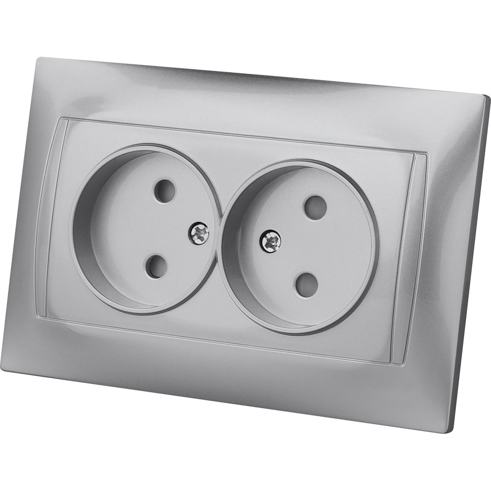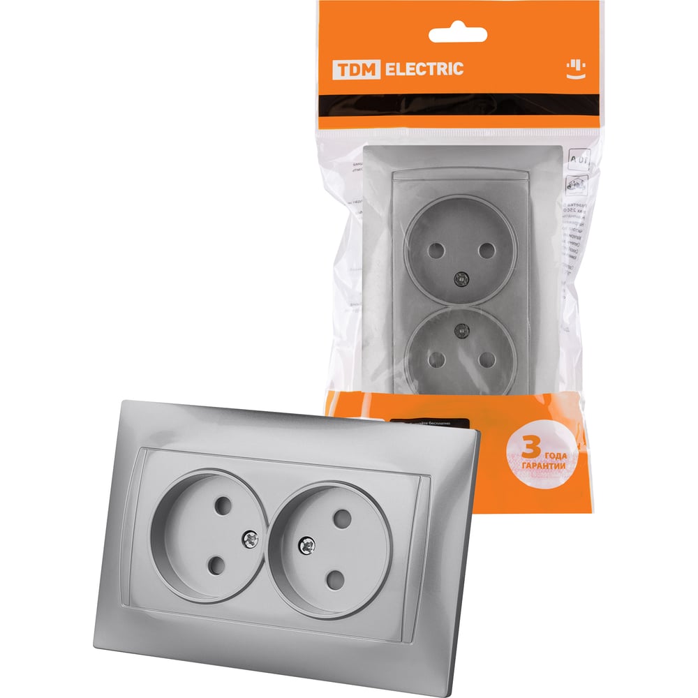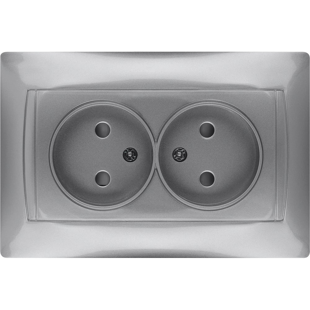 Розетка двойная с защитными шторками TDM ELECTRIC серебристый металлик, 2П 10А 250В серия "Лама" SQ1815-0212
