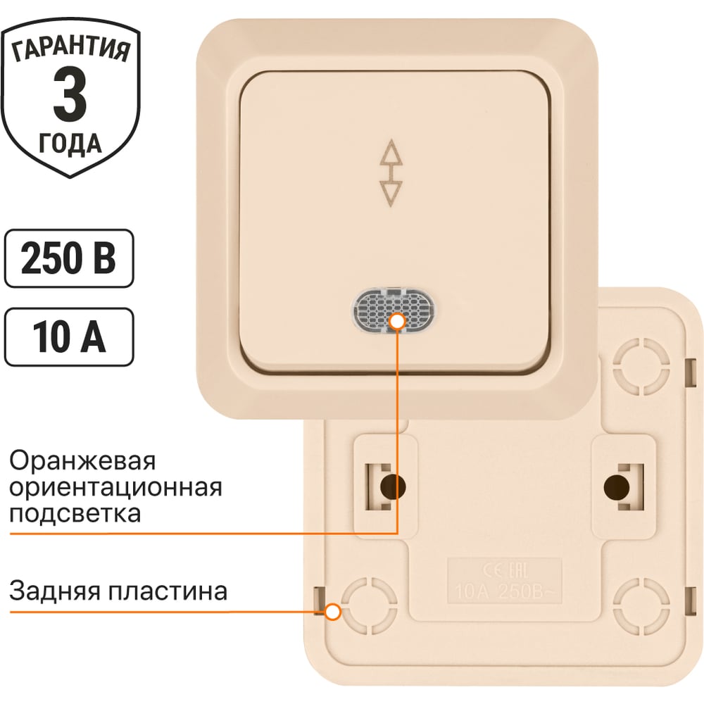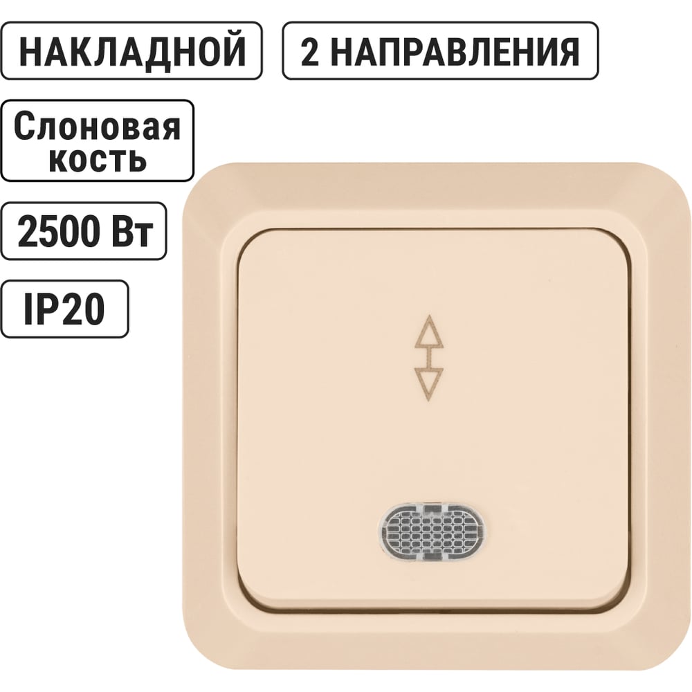 Проходной переключатель TDM ELECTRIC Ладога слоновая кость ОП одноклавишный с подсветкой SQ1801-0012