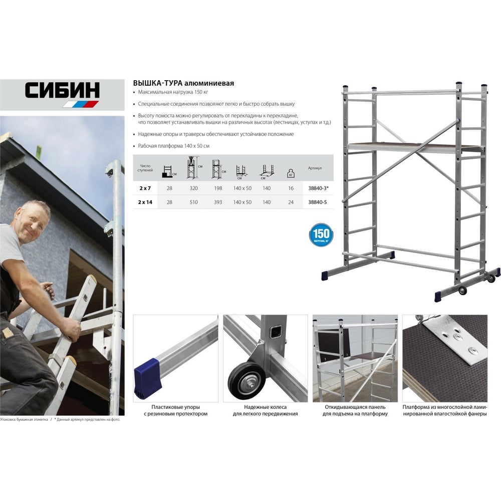 Алюминиевая вышка-тура (3 метра) СИБИН 38840-3