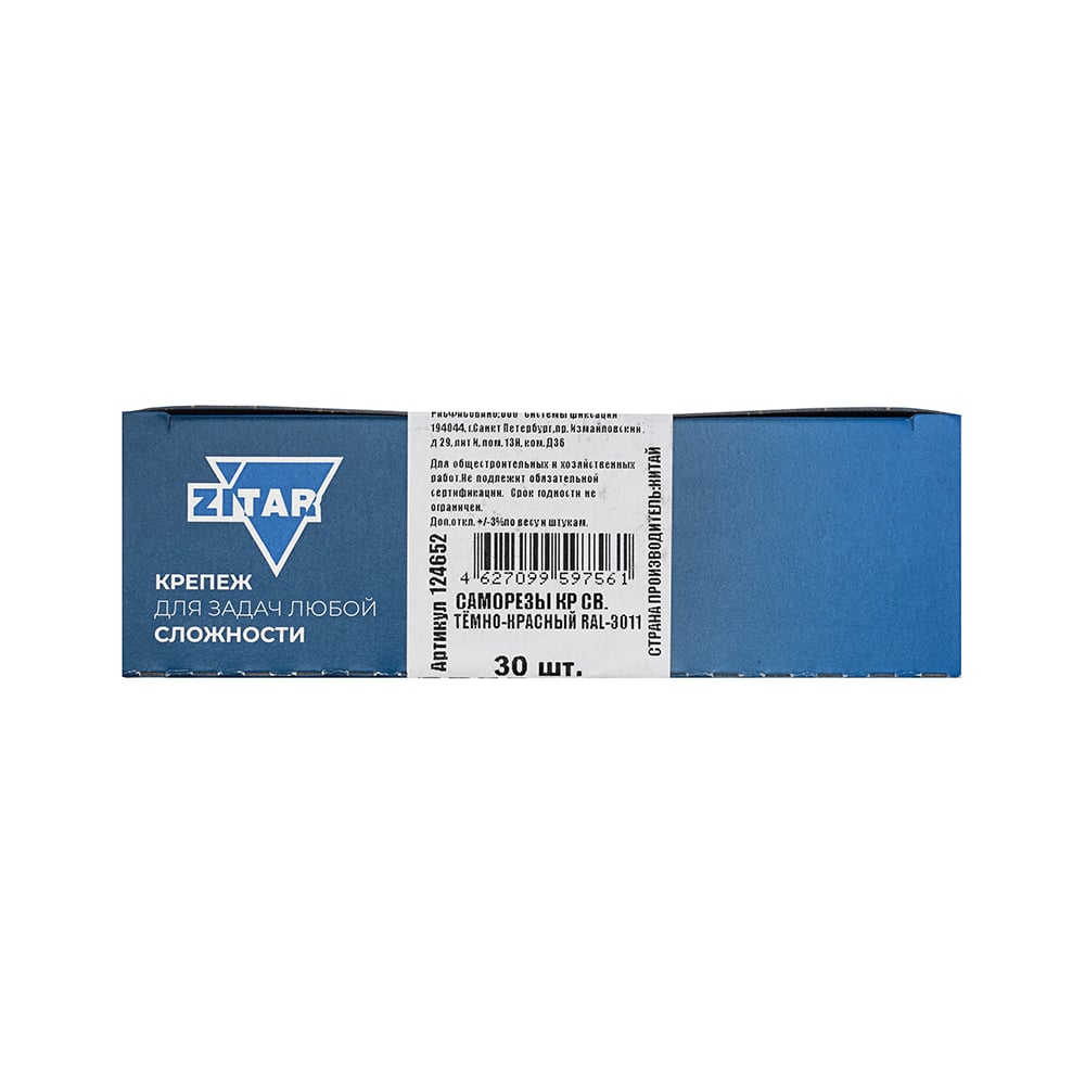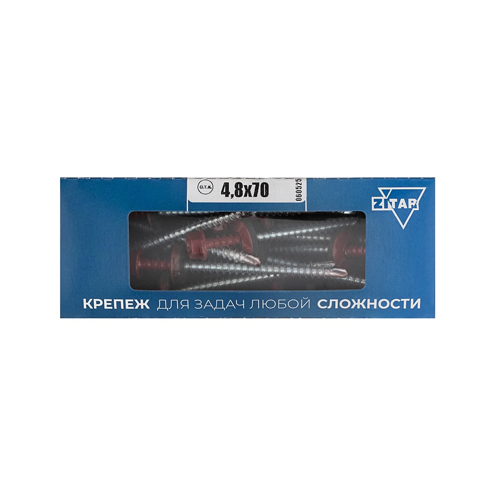 Саморез КР со сверлом, 4,8x70 мм, RAL-3011 темно-красный, 30 шт. в коробке с окном Zitar 124652