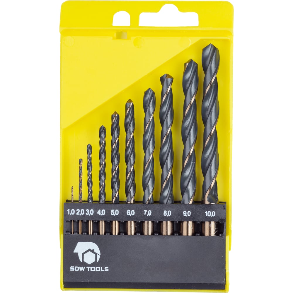 Набор сверл по металлу в пластиковой коробке (10 шт; 1-10 мм; шаг 1 мм; HSS-G) SDW TOOLS se00001