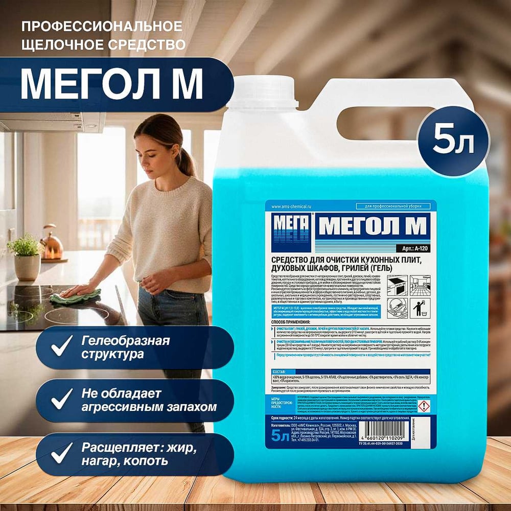 Средство для очистки кухонных плит, духовых шкафов, грилей МЕГА МЕГОЛ гель М 5 л А 120