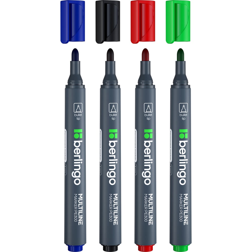 Набор перманентных маркеров Berlingo "MultiLine PE300" 04 цв., пулевидный, 3,0мм, BMc_36409