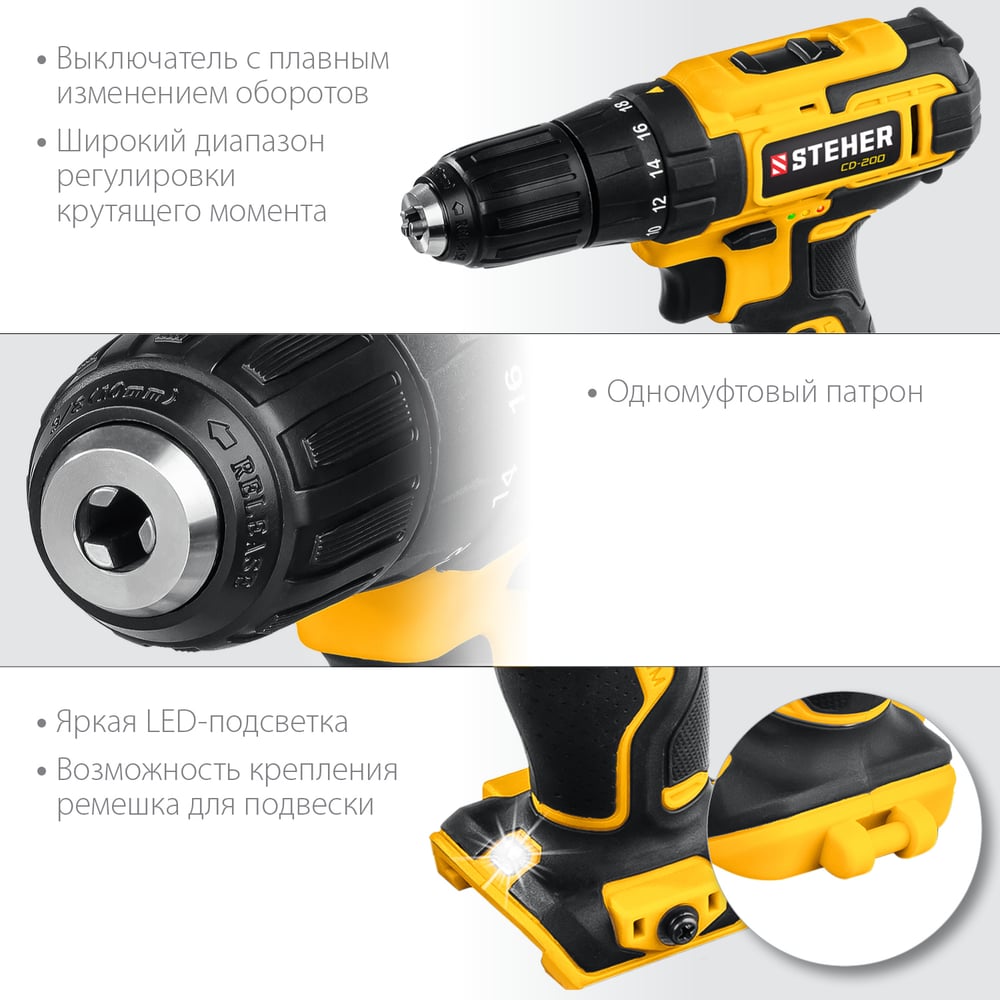 | Индикатор уровня зарядки на корпусе дрели | да |