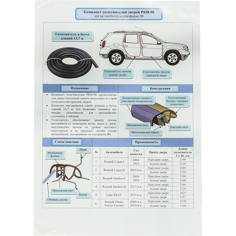| Модель автомобиля | Logan, Duster, Sandero, Lasgus, X-Ray |