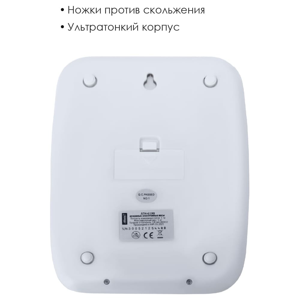 Габариты без упаковки 205х155х170 мм Цвет белый Тип электронные весы Сенсорное управление нет Вес нетто 0.2 кг Материал корпуса пластик Общая длина 205 мм Назначение бытовые Установка настольные Питание CR2032 Класс точности нет Количество и напряжение элементов питания 1х3В Общая ширина 155 мм Индикация перегрузки да Индикация разряда батареи да Погрешность 1 % Мах вес 5 кг Пылевлагозащитные нет Размер платформы 200х150 мм Чаша нет Автоматическое включение нет Автоматическое выключение да Прорезиненные ножки да Сброс веса тары да Общая высота 15 мм Материал платформы/чаши пластик Размер чаши нет мм