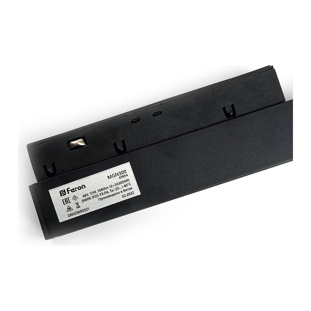 Светодиодный магнитный светильник FERON MGN300 трековый низковольтный 12W, 1080 Lm, 3000К, 30 градусов, черный 41934