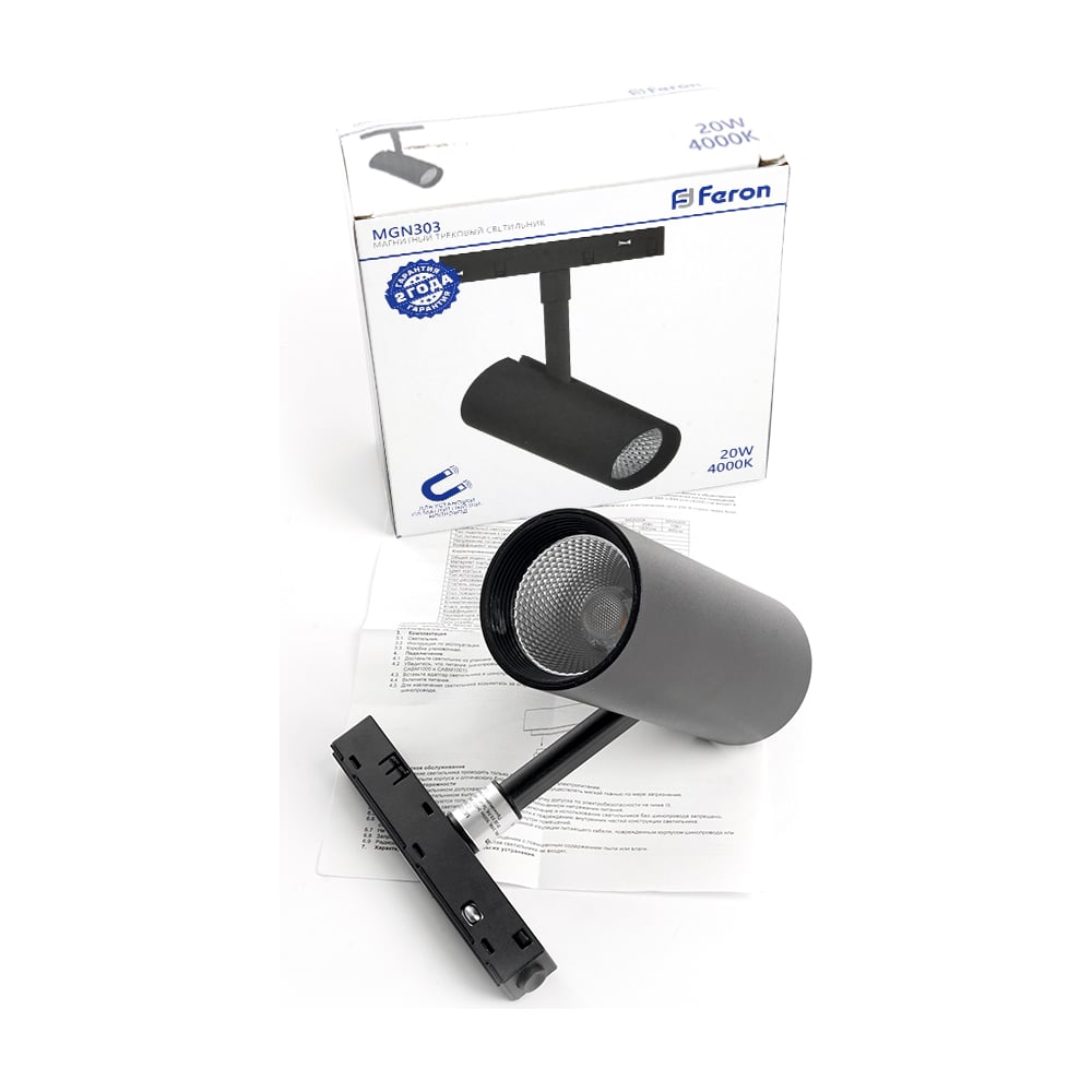 Светодиодный магнитный светильник FERON MGN303 трековый низковольтный, 20W, 1800 Lm, 4000К, 35 градусов, черный 41948