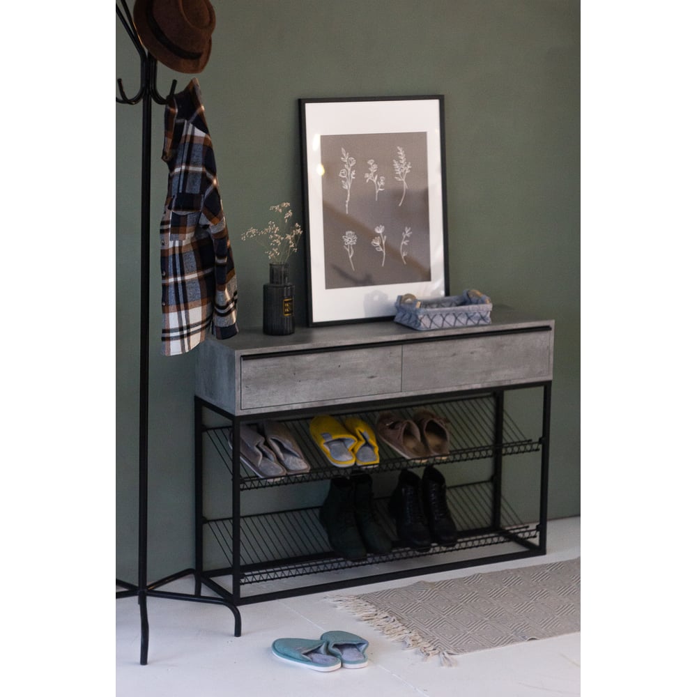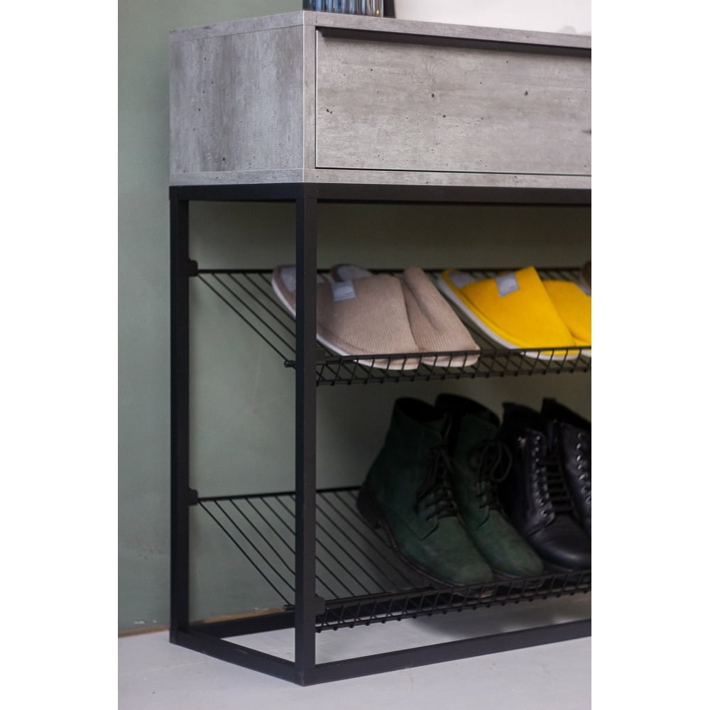 Тумба НАЙДИ с полками под обувь, черный муар, ЛДСП метрополитан грей LTO-5502