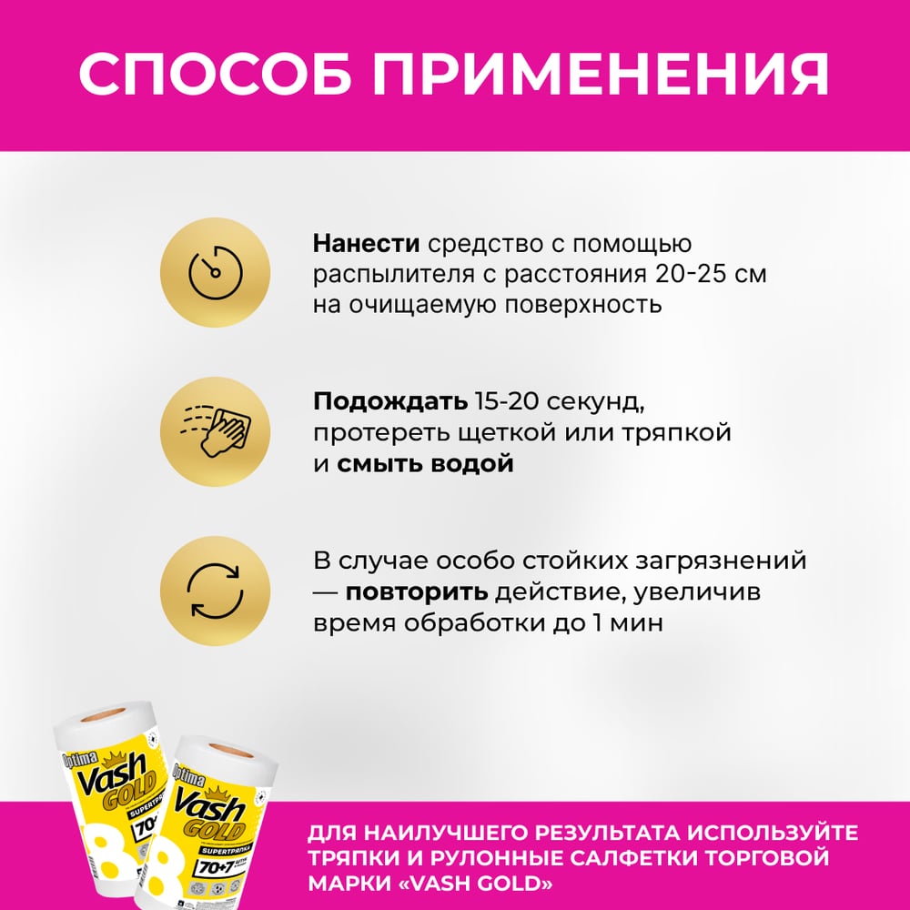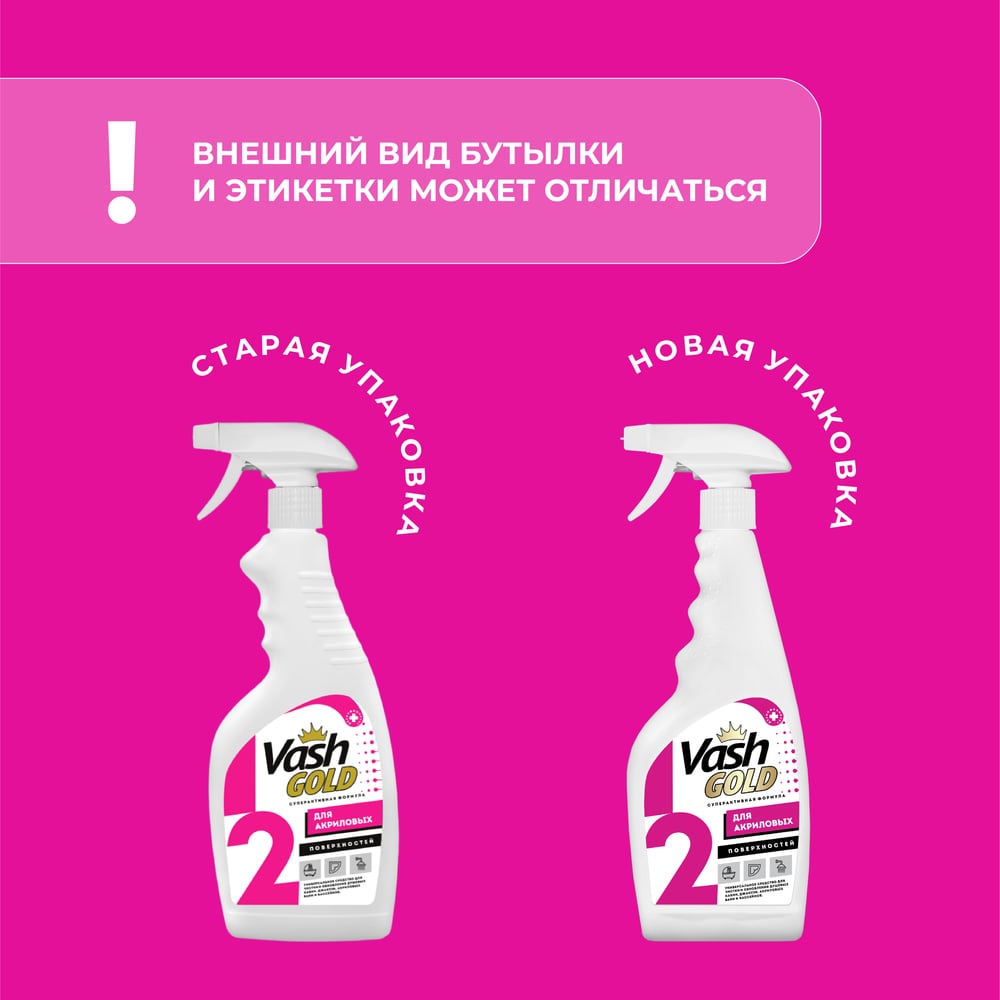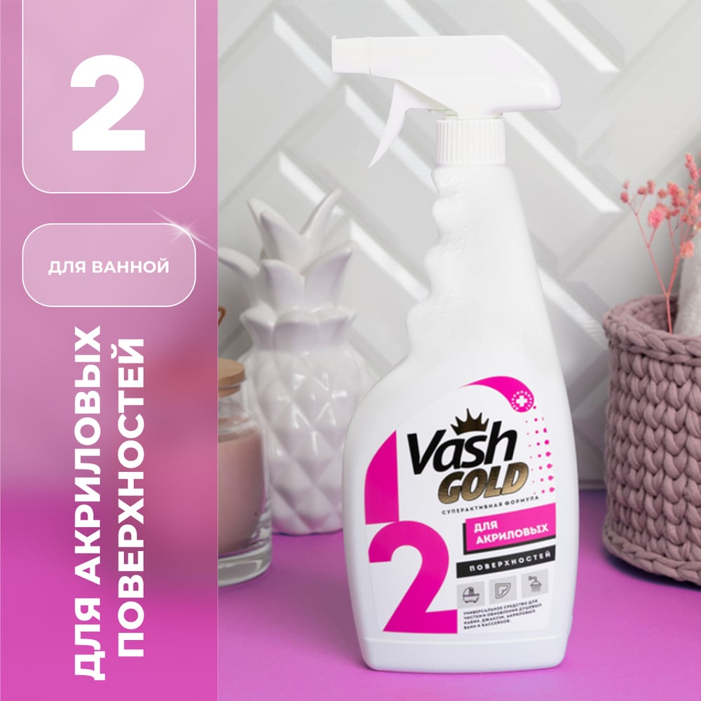 Средство для чистки акриловых ванн и душевых кабин VASH GOLD 500 мл., спрей 307260