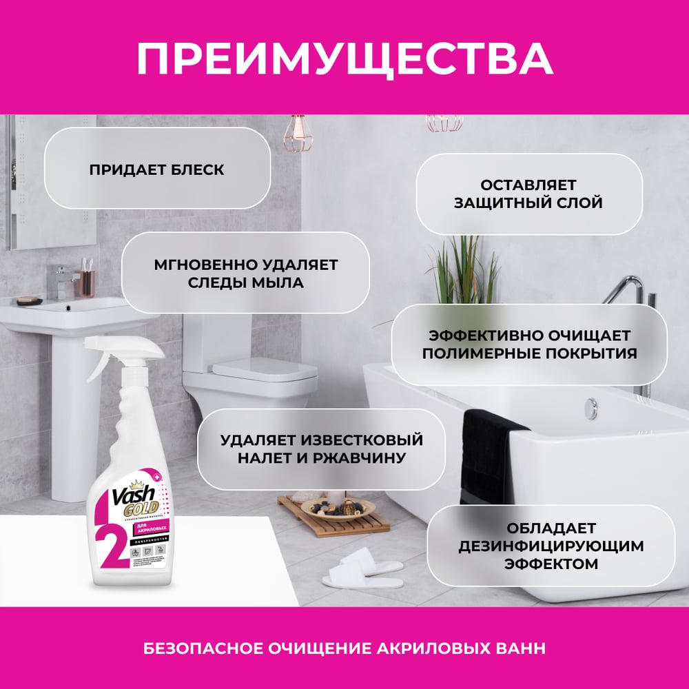 Средство для чистки для акриловых ванн и душевых кабин VASH GOLD 307260