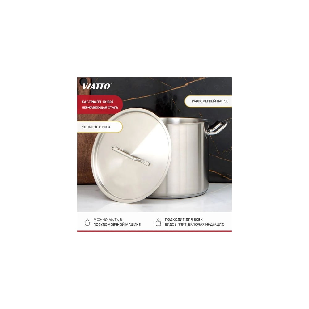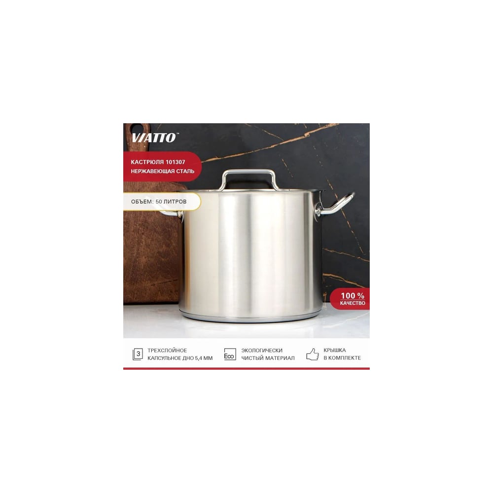 Кастрюля Viatto Commercial нержавеющая сталь с тройным дном 400x400 мм объем 50 л с двумя ручками 101307 62073