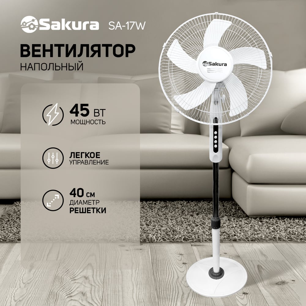 Напольный вентилятор SAKURA SA-17W белый, 1 шт./коробка РТ-00069518