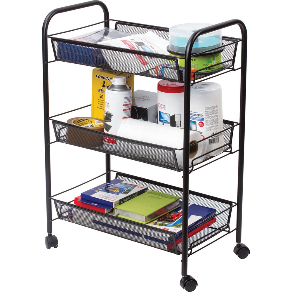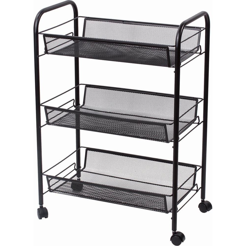 Офисно-бытовая этажерка-тележка 3 яруса, на колесах, металл, черная, 43,5х26х62,5 см BRABIX 603751