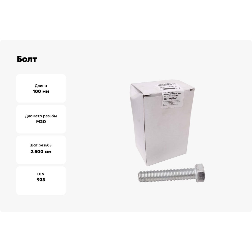 Шестигранный болт крепежная техника 20х100 мм DIN933 10 шт. 493583 БК