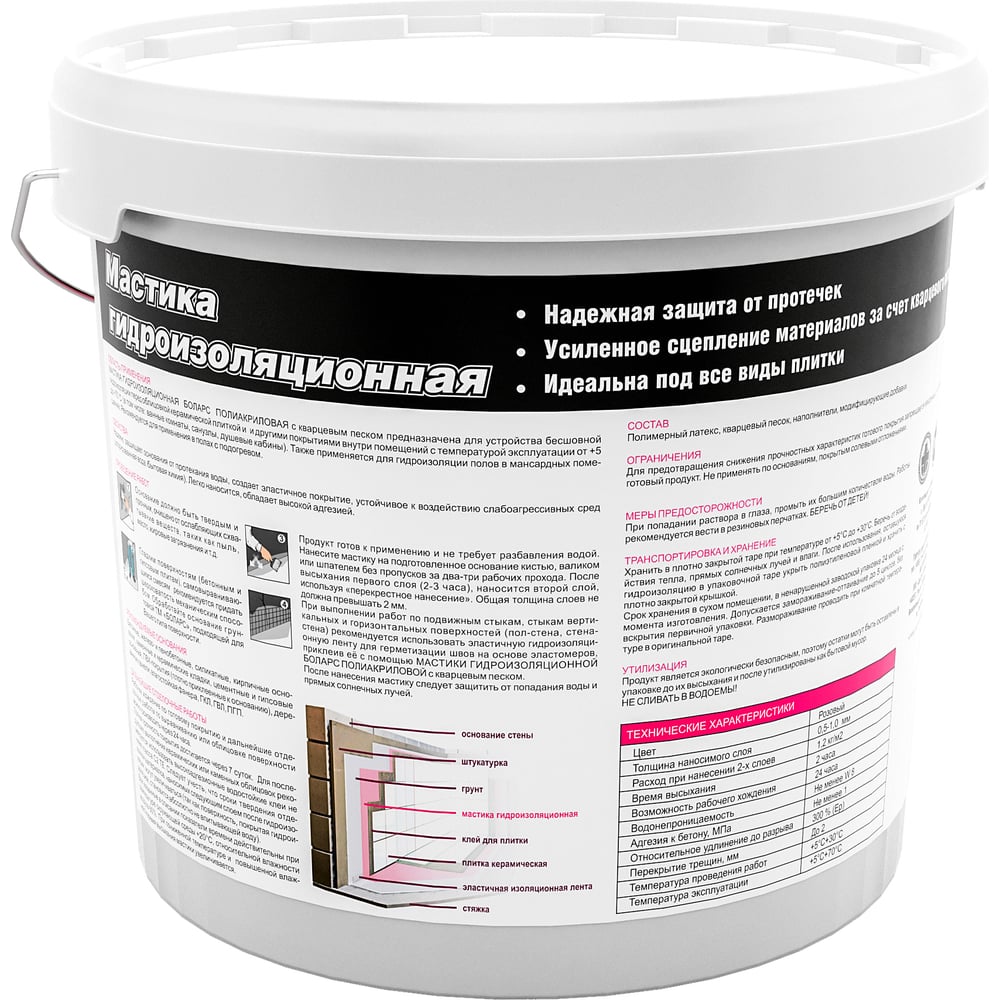 Гидроизоляционная мастика БОЛАРС полиакриловая, с кварцевым песком, 6 кг 00000039148