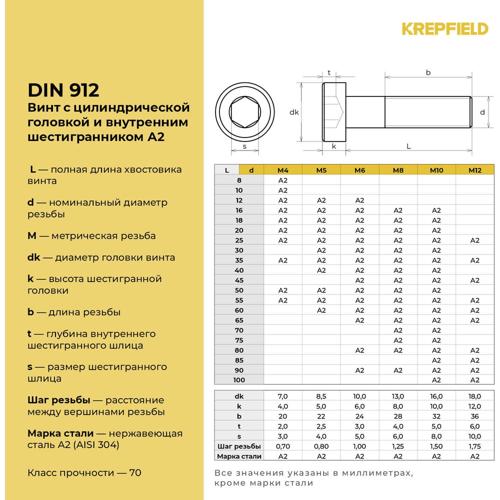 Винт KREPFIELD 912A2ВИНТПР6Х30-20