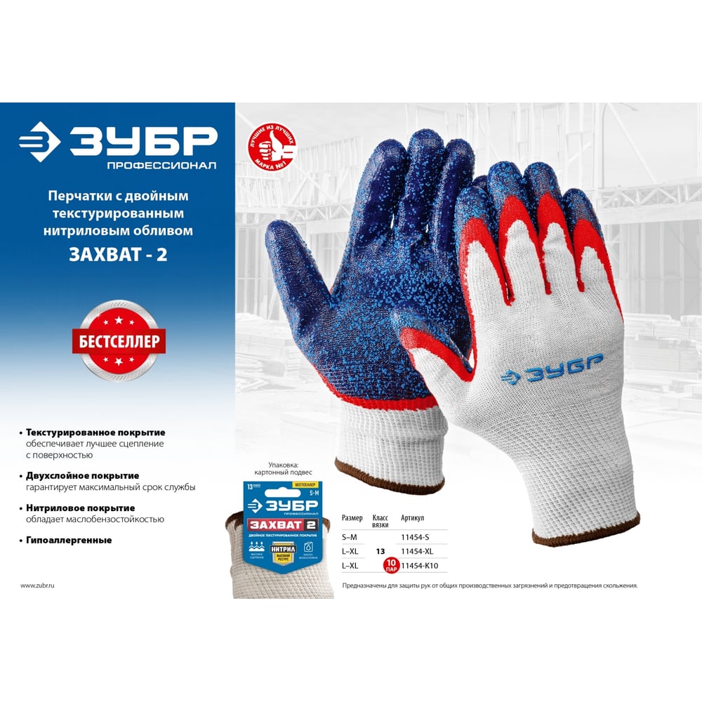 Перчатки ЗУБР Захват-2 11454-K10