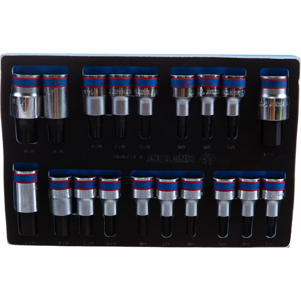 Набор торцевых насадок HEX и SPLINE (ложемент, 19 предметов) KING TONY 9-4129PRV