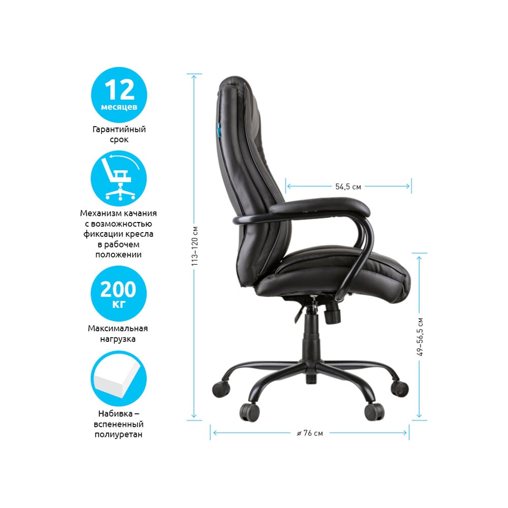 Кресло руководителя Helmi HL-ES01 Extra Strong повышенной прочности, экокожа черная, до 200 кг 274820