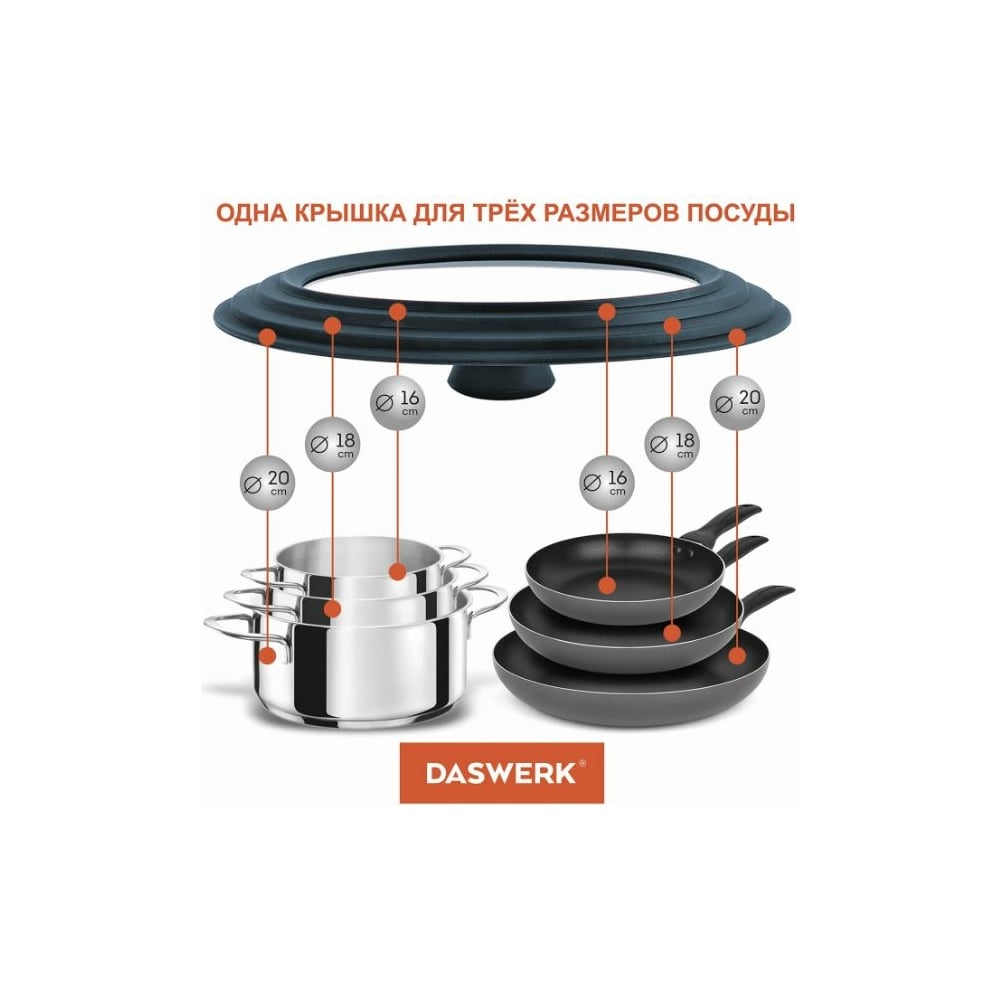 Универсальная крышка для любой сковороды и кастрюли DASWERK 607583