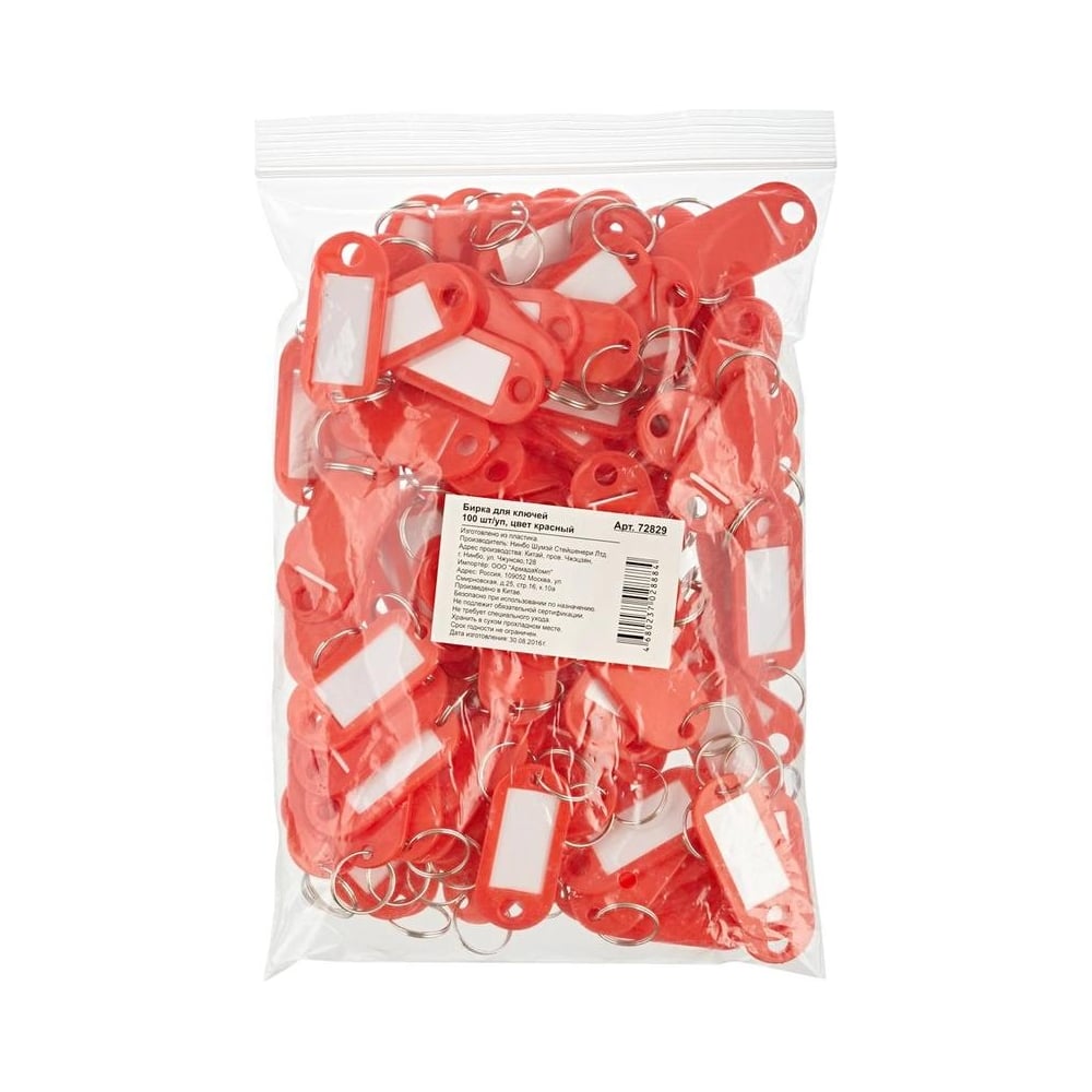 Пластиковая бирки для ключей ООО Комус красная, 100 шт. 72829