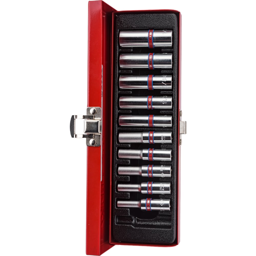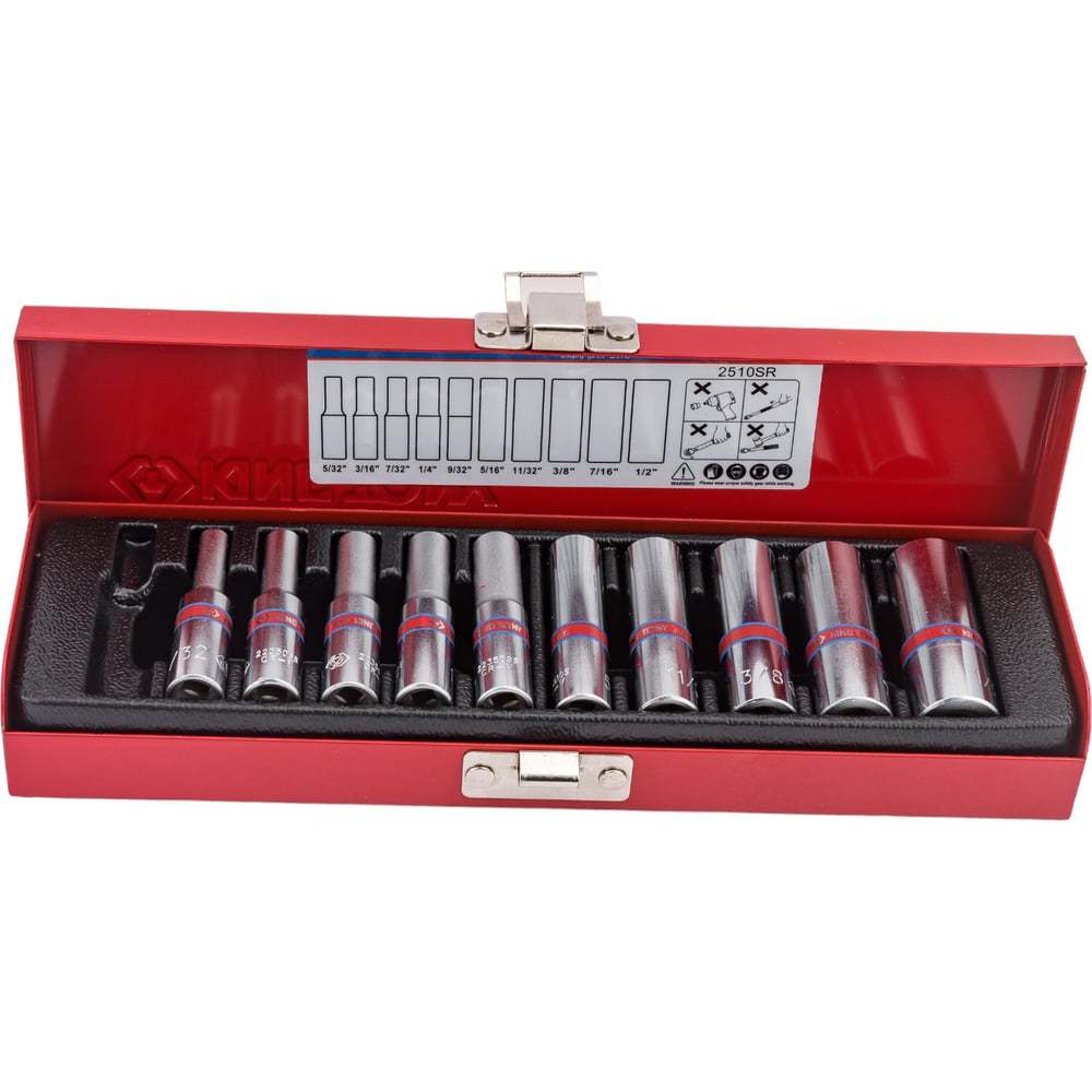 Набор глубоких торцевых головок (1/4", шестигранные, 5/32"-1/2", 10 предметов) KING TONY 2510SR